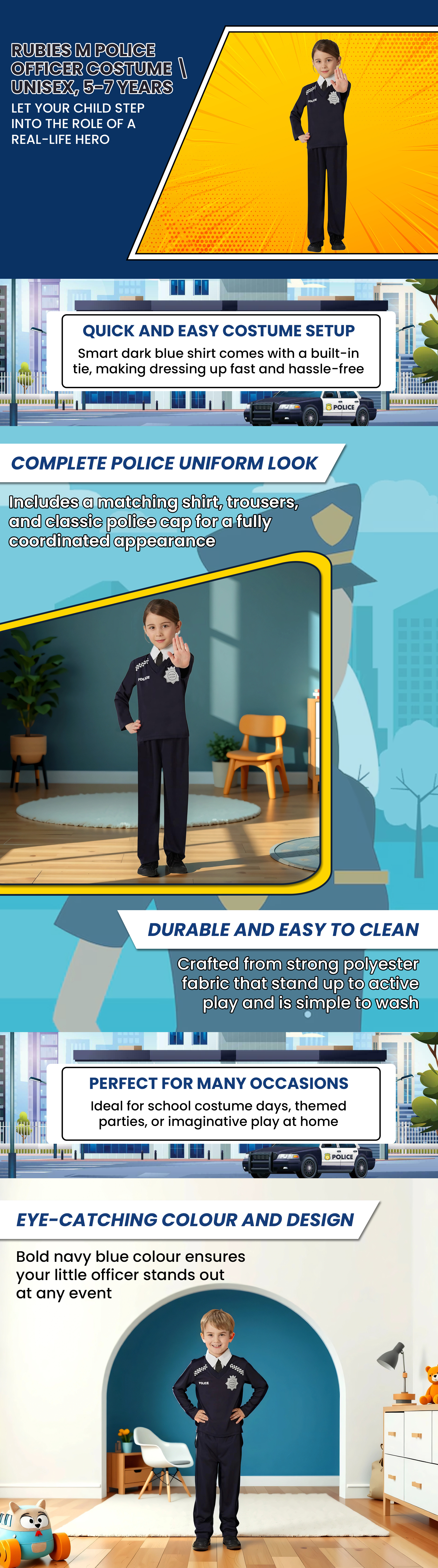 Rubies M Police Officer Costume Unisex, 5-7 Years|The Kanaa