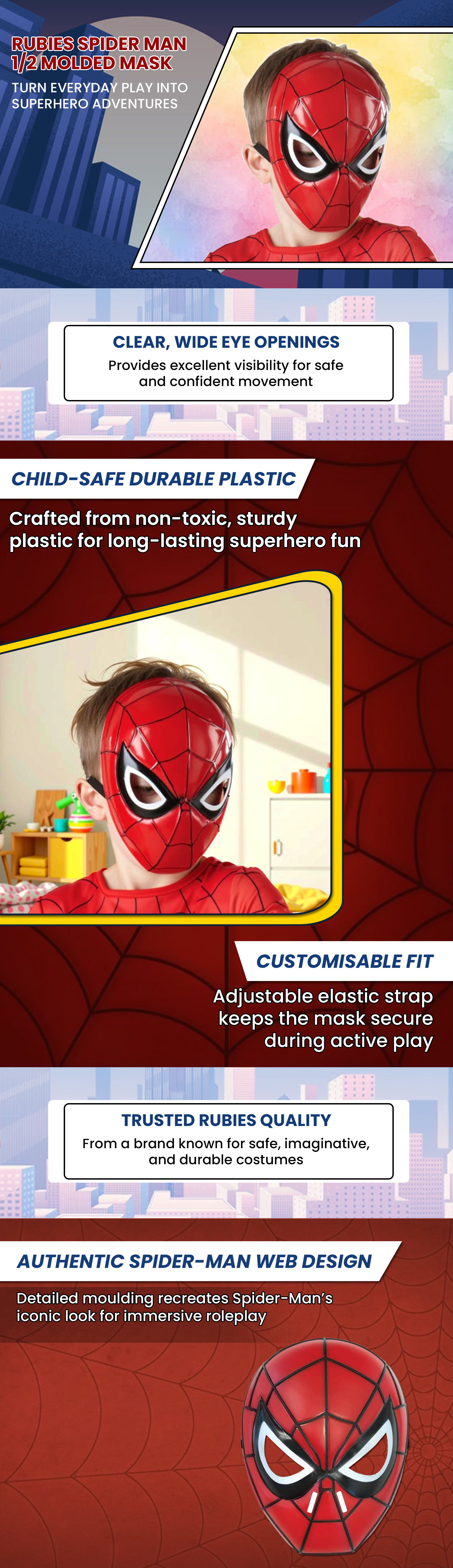 Rubies Spider Man 1/2 Molded Mask Boys, 5-7 Years|The Kanaa