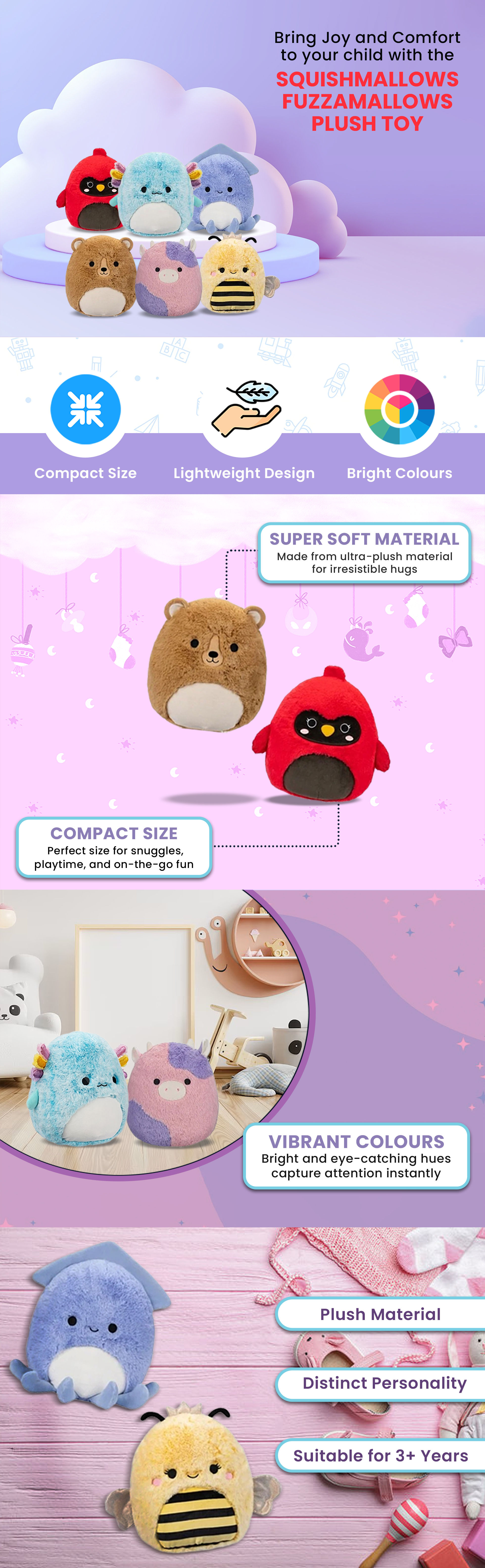 Squishmallows 12″ Fuzzamallows Assorted Plush Toy Unisex, 3-4 Years|The Kanaa