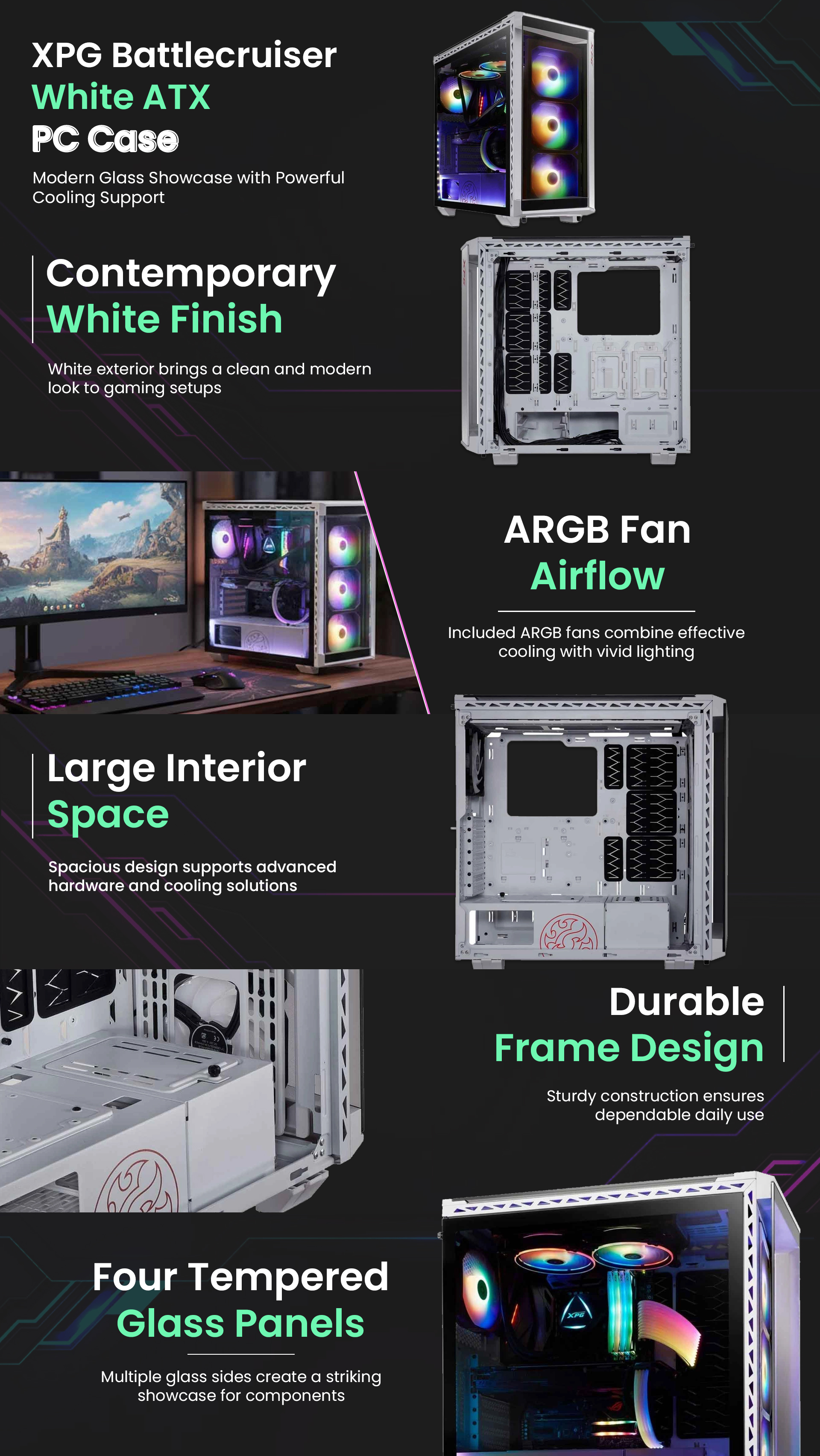 XPG White 4x ARGB Fans Battlecruiser 4-Sided Tempered Glass ATX PC Case|The Kanaa