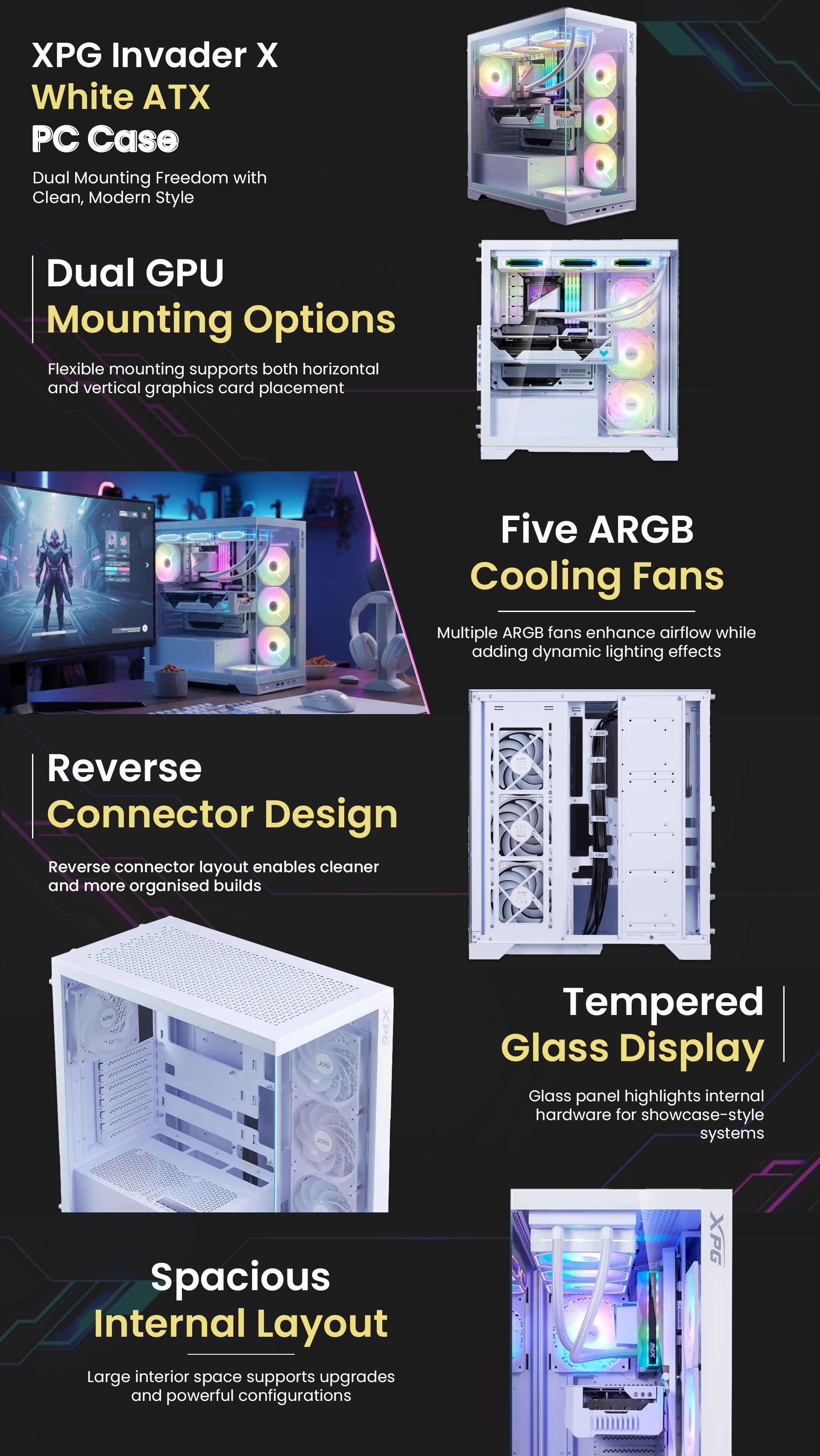 XPG White 5x ARGB Fans Invader X BTF Horizontal/Vertical GPU Support ATX PC Case|The Kanaa