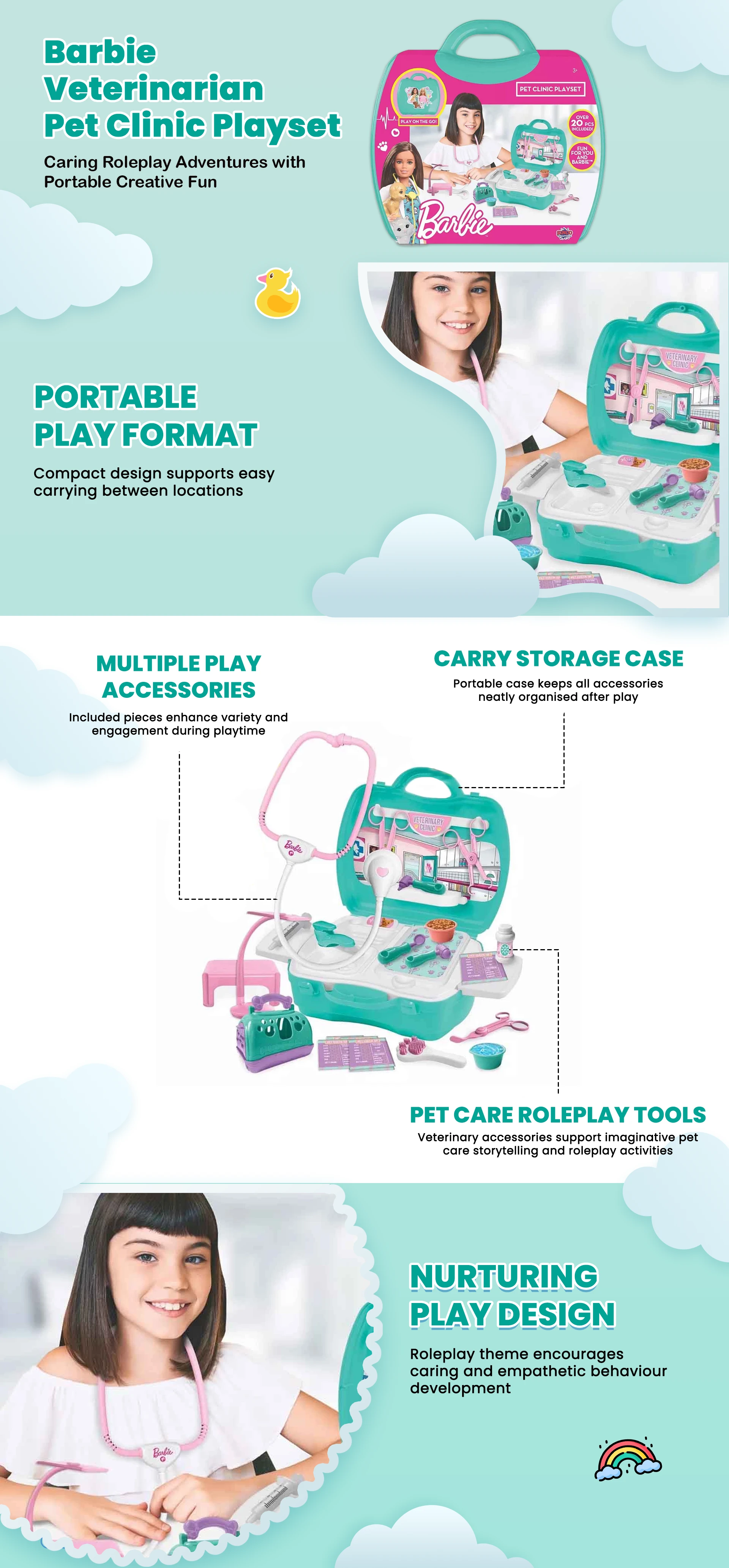باربي مجموعة عيادة الحيوانات البيطرية السريعة مع الحيوانات الأليفة للبنات، 3-4 سنوات | متجر كانا