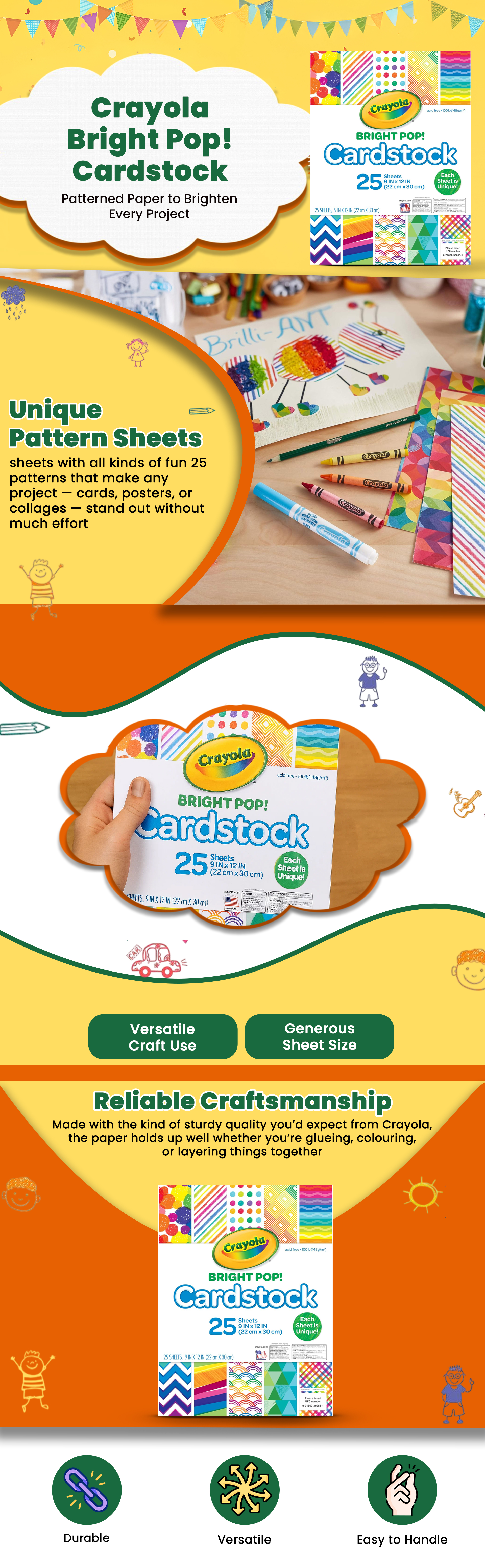 كرايولا ورق كارد ستوك برايت بوب! للجنسين، 3-4 سنوات، مجموعة من 25 | متجر كانا