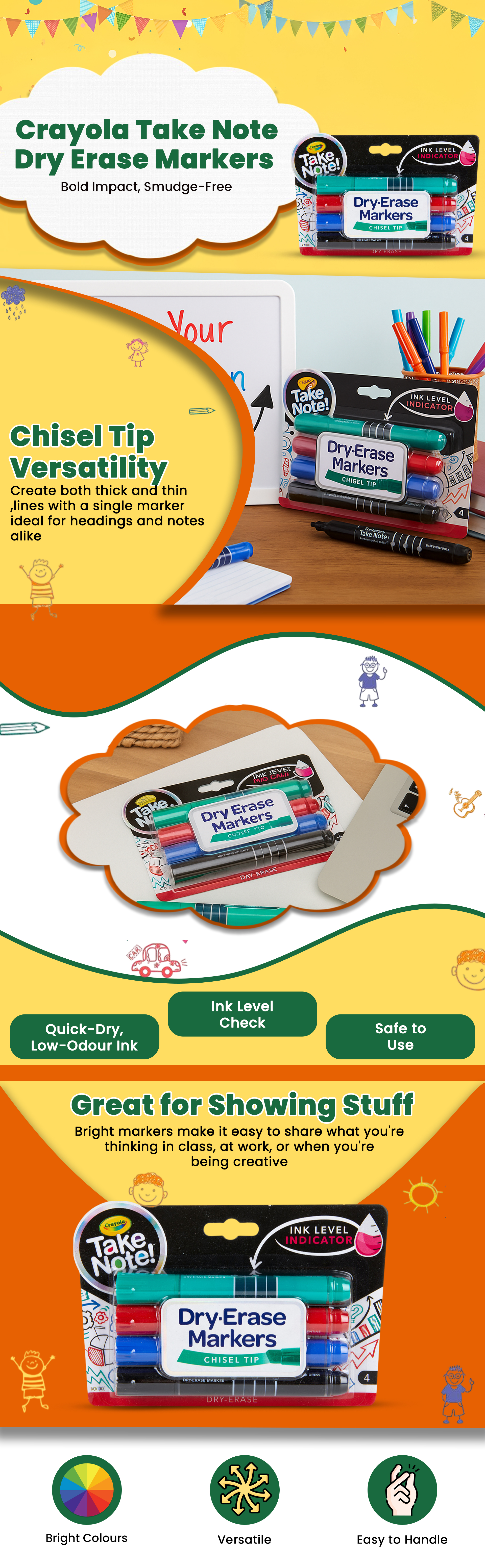 كرايولا أقلام ماركر سبورة برأس مشطوف تيك نوت – 4 أقلام، للجنسين، 11-12 سنة | متجر كانا