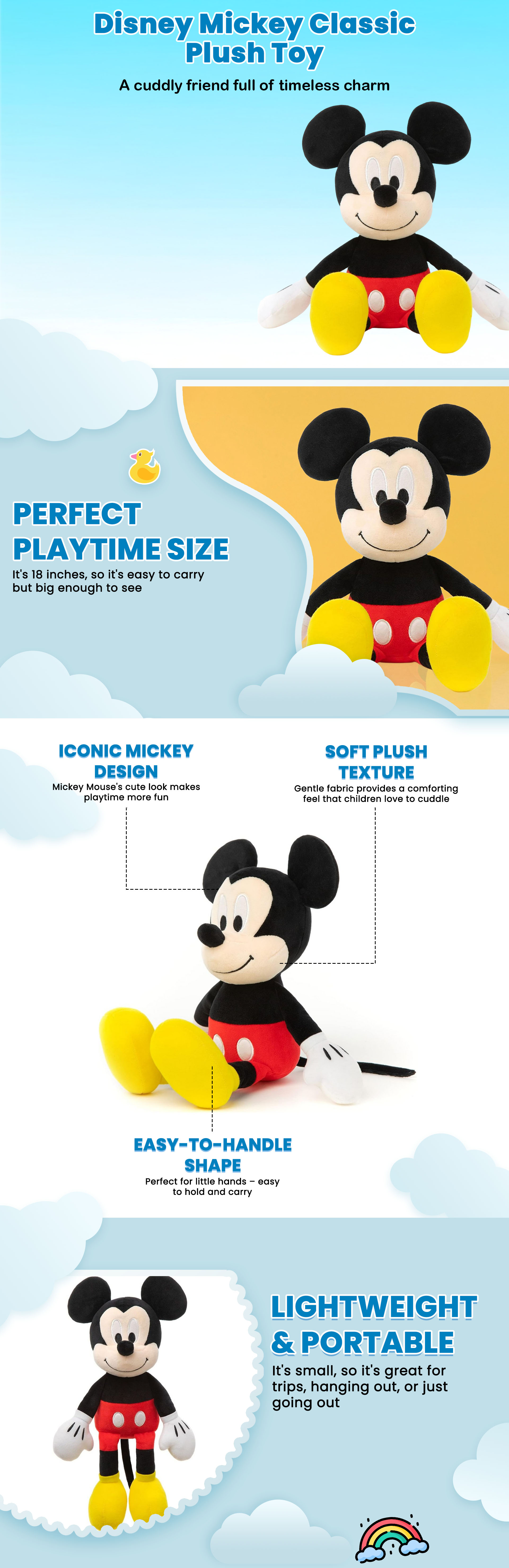 ديزني ميكي دمية كلاسيكية محشوة 18 إنش للجنسين، 3-4 سنوات | متجر كانا