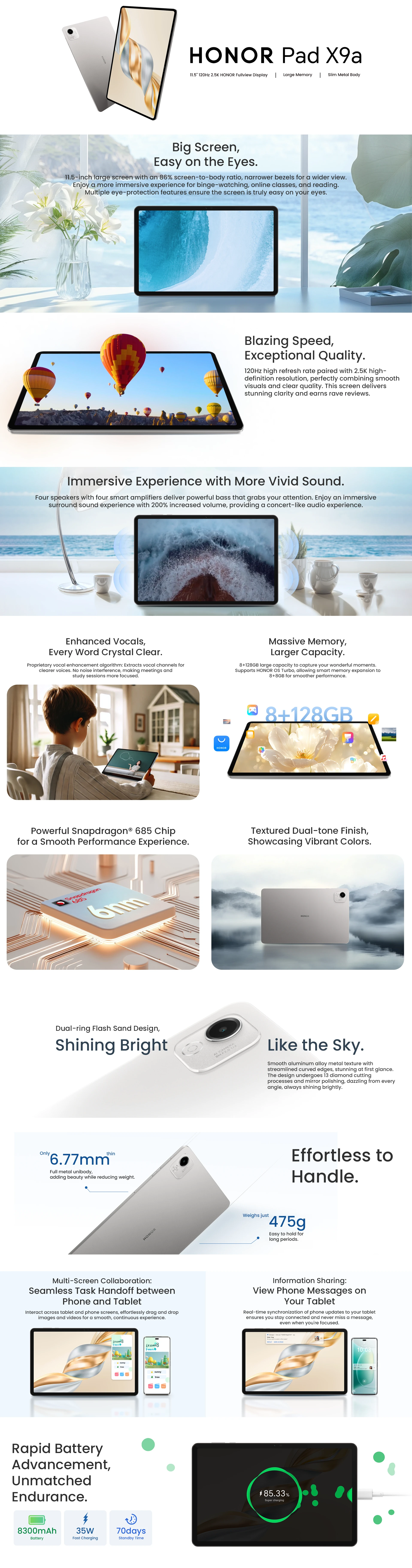 هونر باد X9a واي فاي جهاز لوحي أندرويد 8 جيجابايت رام 128 جيجابايت - رمادي | متجر كانا