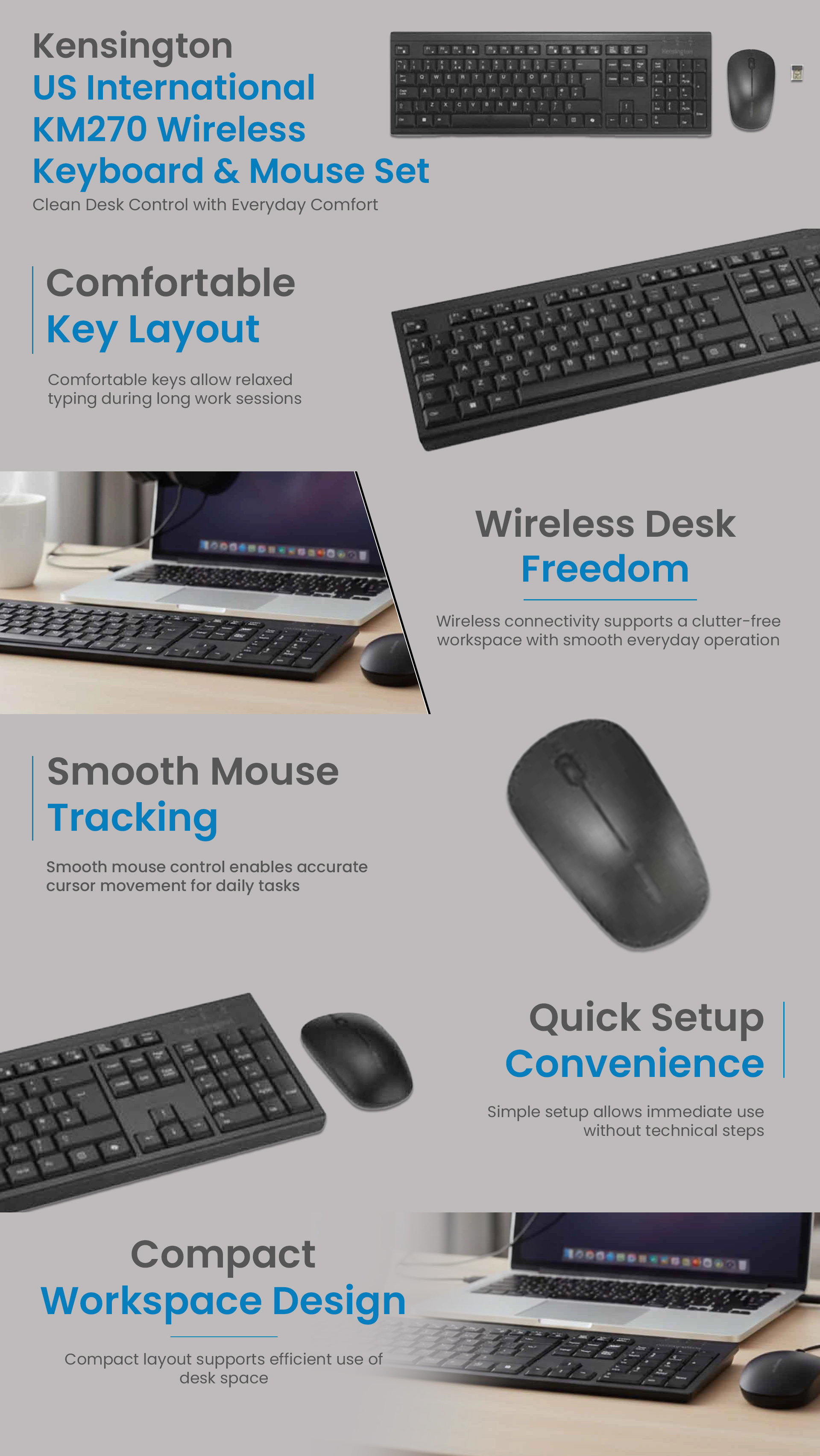 كينسينغتون مجموعة لوحة مفاتيح وماوس لاسلكية كيه إم 270 تخطيط أمريكي | متجر كانا