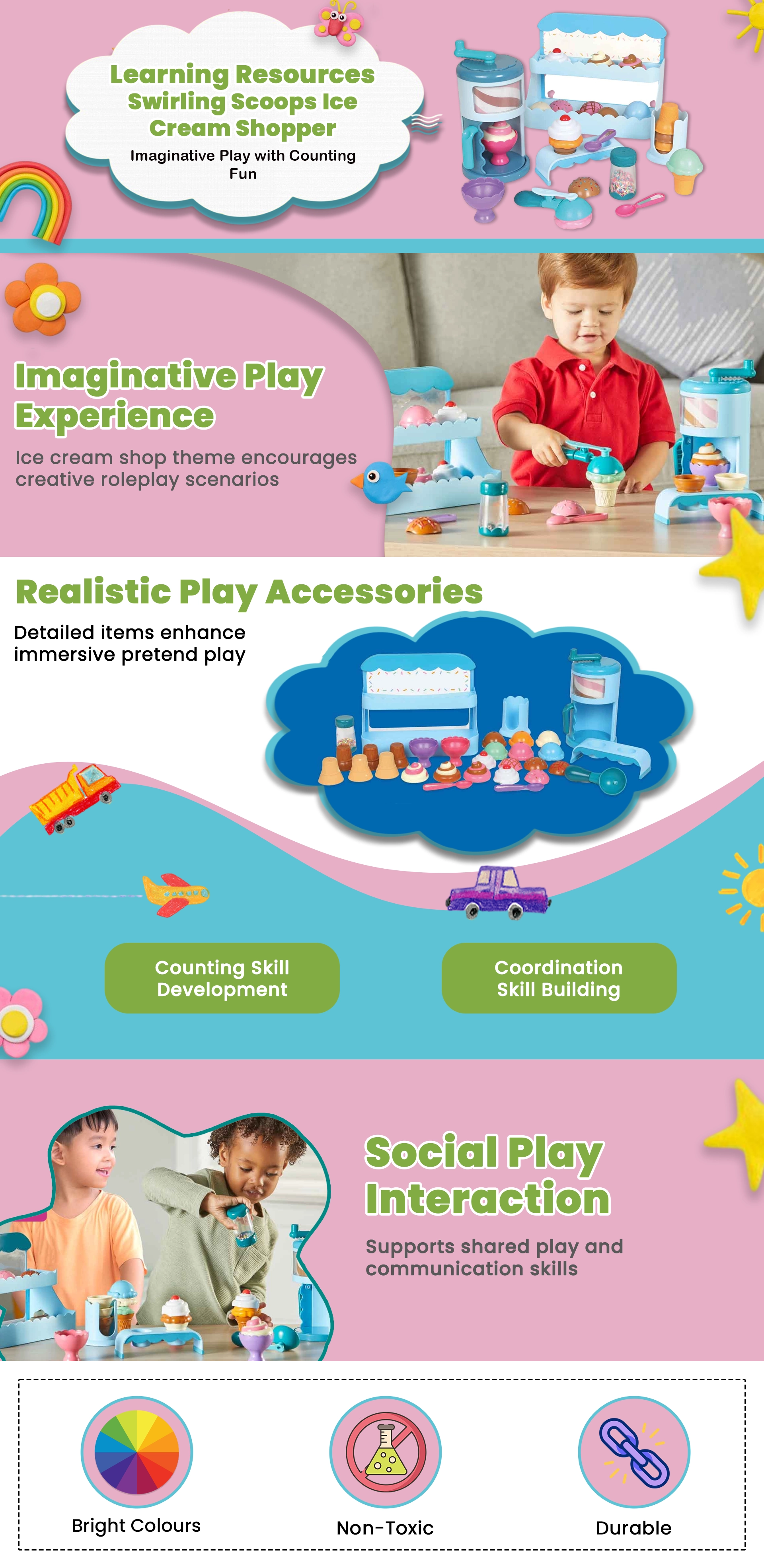 ليرننغ ريسورسز متجر الآيس كريم الدوار سويرلينغ سكوبس للجنسين، 3-4 سنوات | متجر كانا