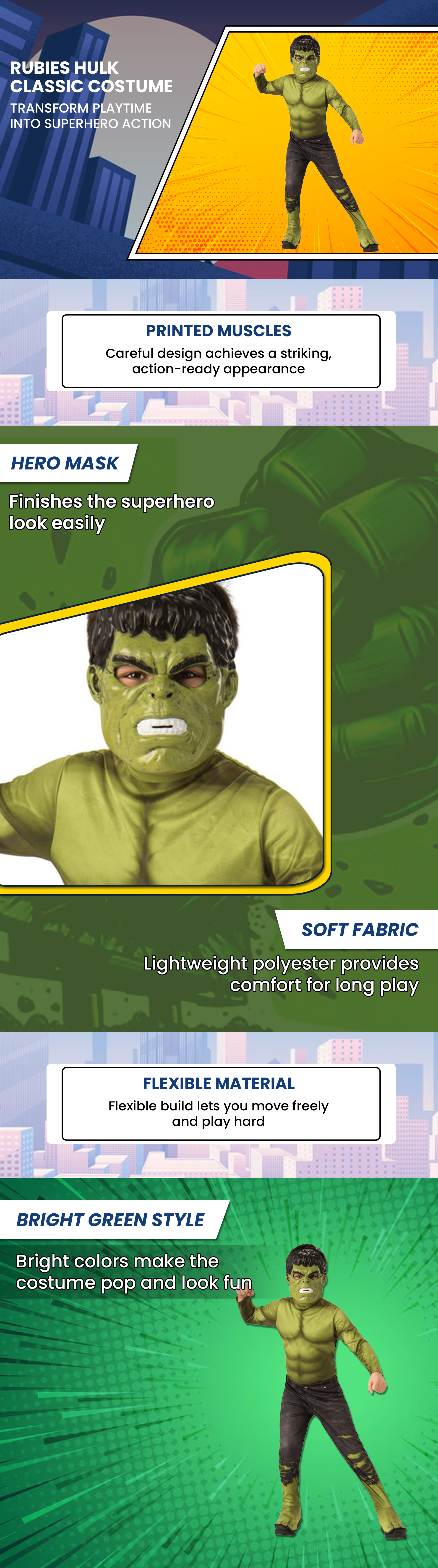 روبيز زي هالك كلاسيك مقاس S للأولاد 3-4 سنوات | متجر كانا