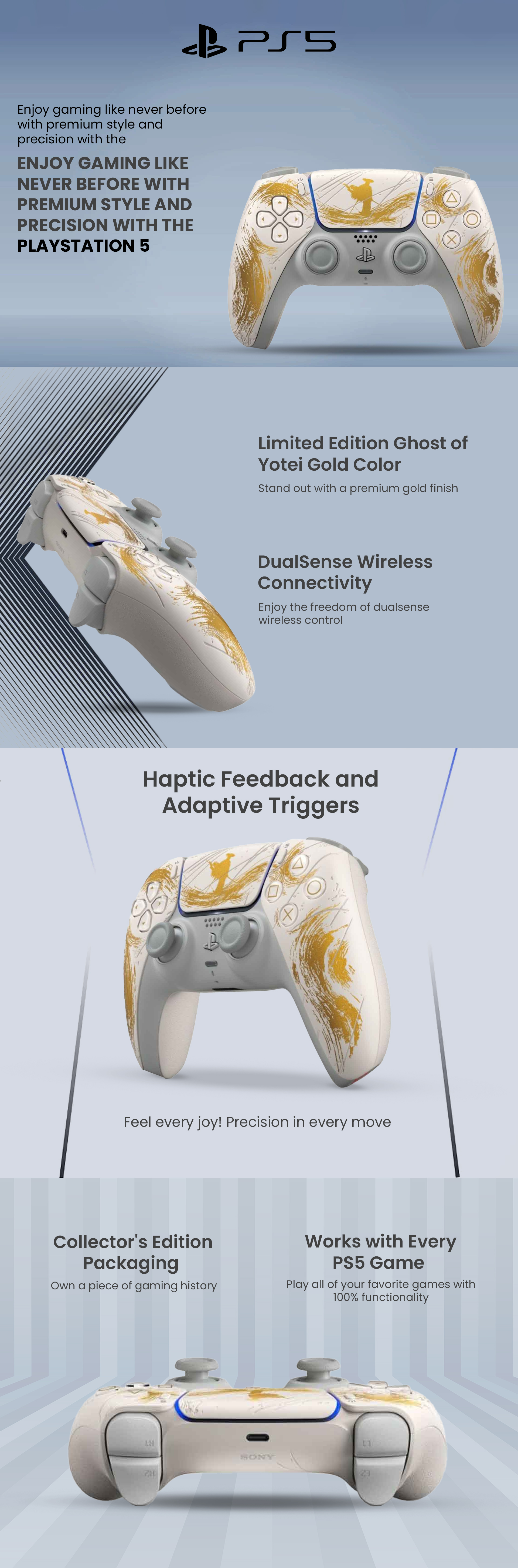 سوني دوال سينس وحدة تحكم لاسلكية Ghost of Yotei باللون الذهبي إصدار محدود لجهاز بلايستيشن 5 | متجر كانا