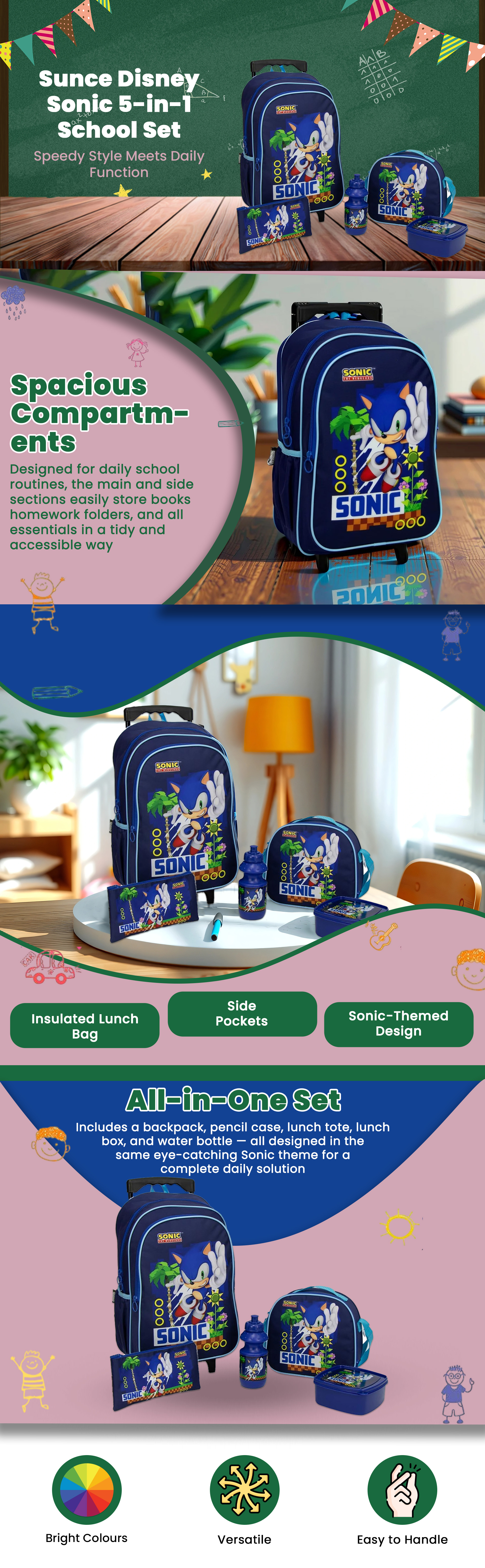 سنس بي تي إس مجموعة مدرسية 5 في 1 ديزني سونيك للجنسين، من عمر 5 إلى 7 سنوات | متجر كانا